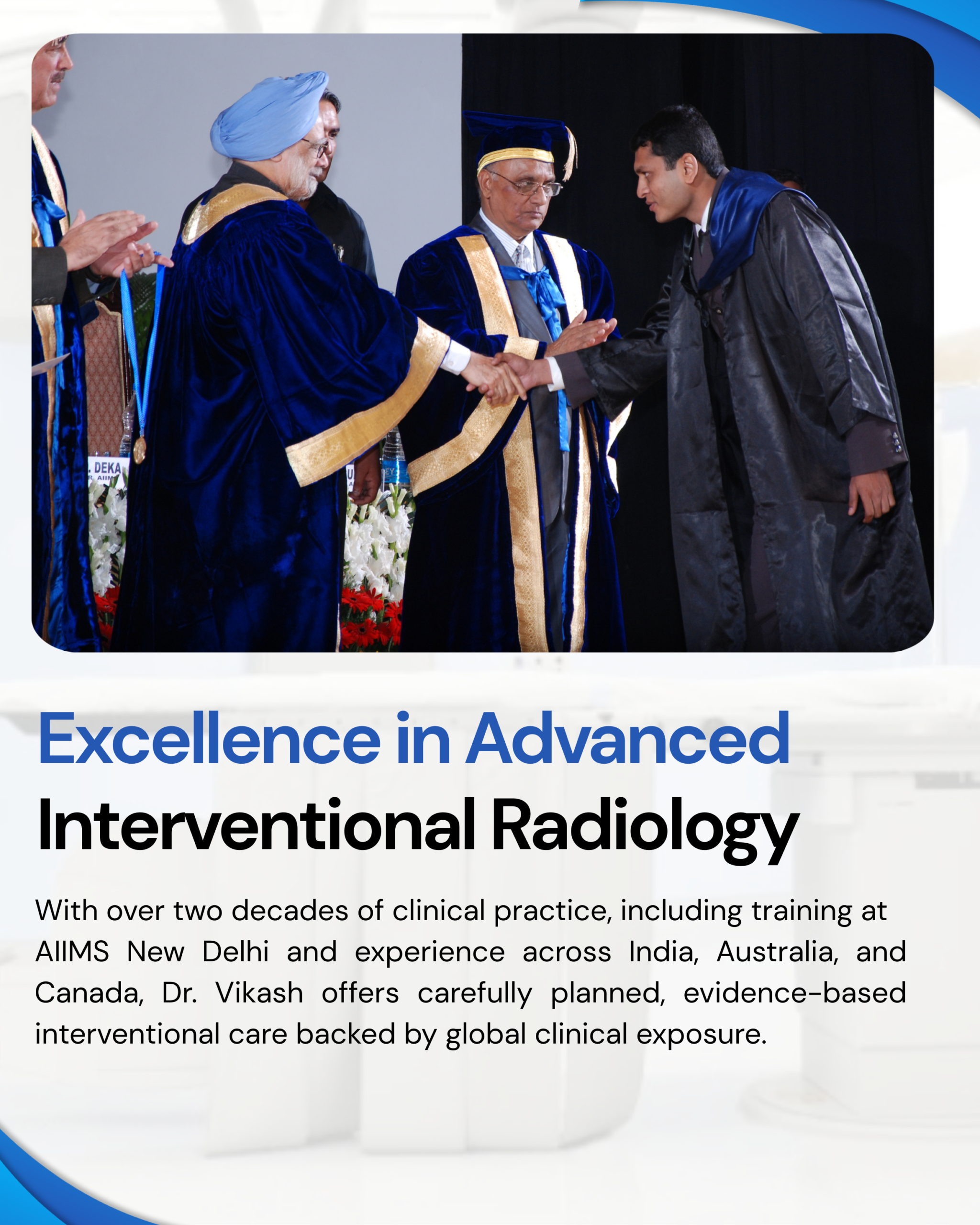 Trained at AIIMS New Delhi and trusted across India, Australia, and Canada, Dr. Vikash brings decades of hands-on expertise in complex diagnostic and interventional procedures delivering precision driven care backed by global clinical exposure.